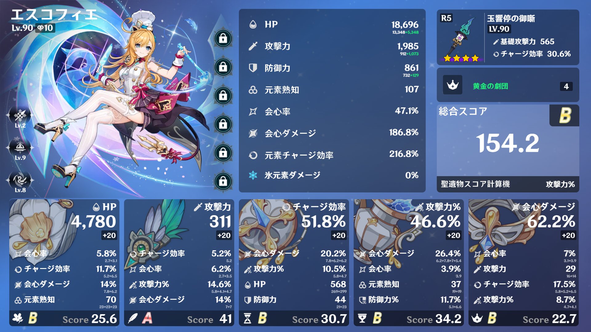 やはり火力は急上昇している一方、王者の2セット効果が崩れ、HPは約28万減少。