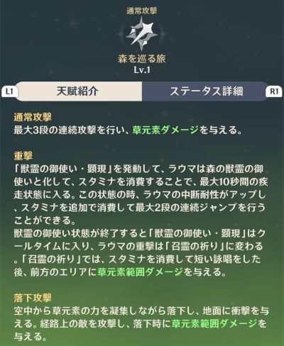 重撃で鹿に変身し探索性能が上昇するというオマケ効果があります。