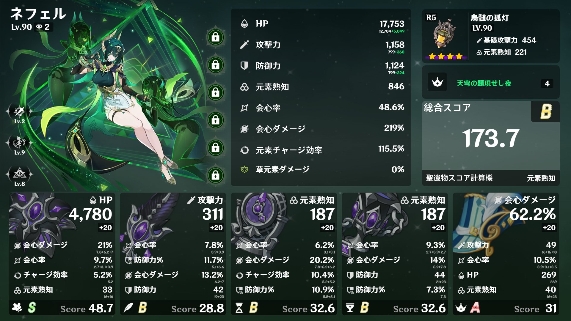 個人的な結論としては、幻想シアター的に草元素アタッカー陣の火力と枚数に自信があるなら、ネフェルにこだわる必要はないと思います。