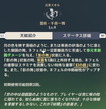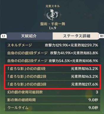 - 元素スキルを1回使用し【影の舞】状態に入る