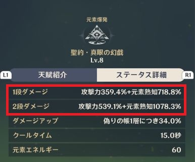 元素スキルと違い、攻撃力が上がるとダメージも上がりますが、攻撃力の価値は低いという結論は変わりません。