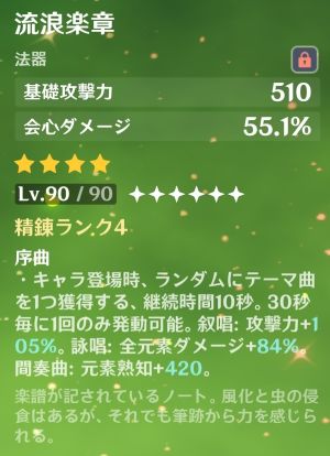次点で会心ダメージアップが強力な【流浪楽章】ですが…