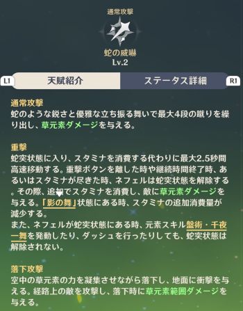 「蛇突状態」のときに草露の回復力が上昇する、ということですが、通常攻撃天賦でも書いた通り、実戦で使うことはないと思います。