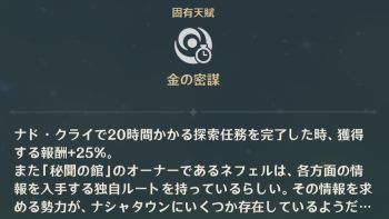 それと、この固有天賦と関係があるかは不明ですが、上で書いたとおり、毎日?10万モラが美味すぎる。