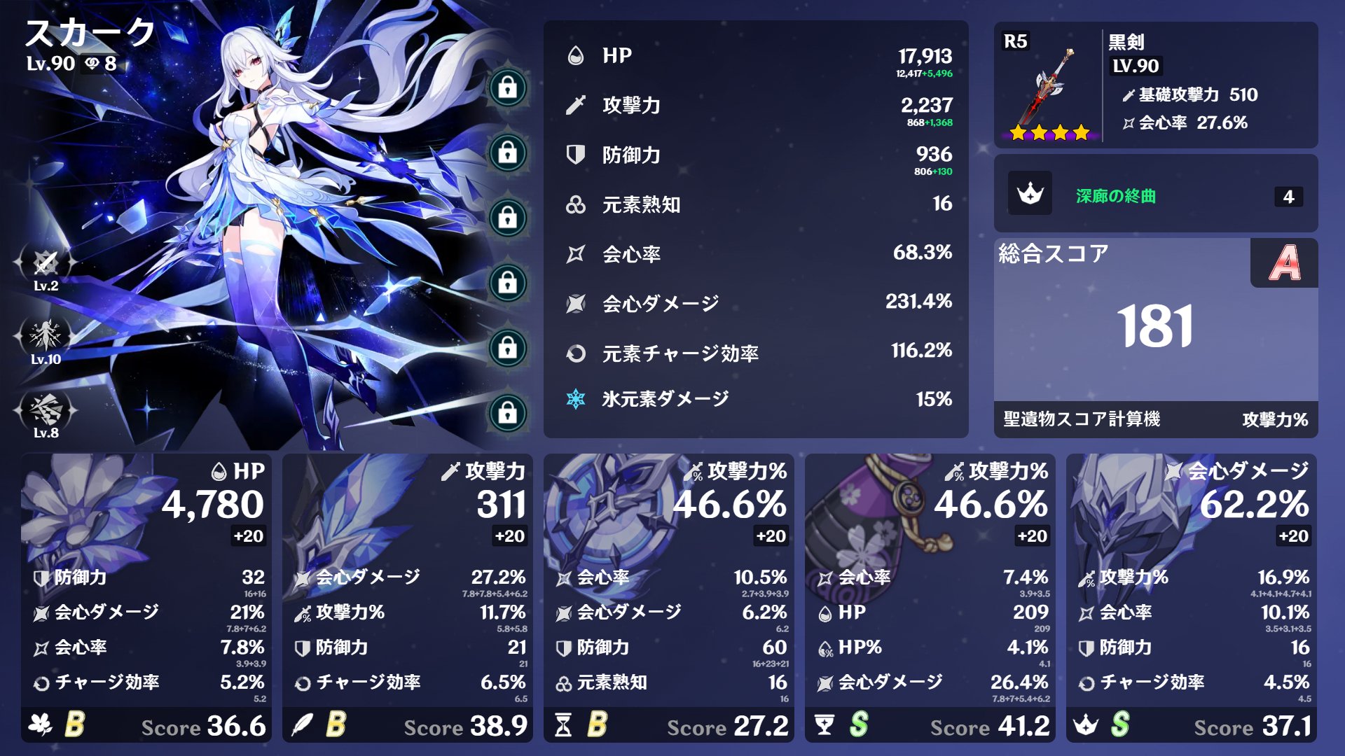 スコア181とか結構強いですよね。(こんなにスコアが高いなんて知らなかった…)