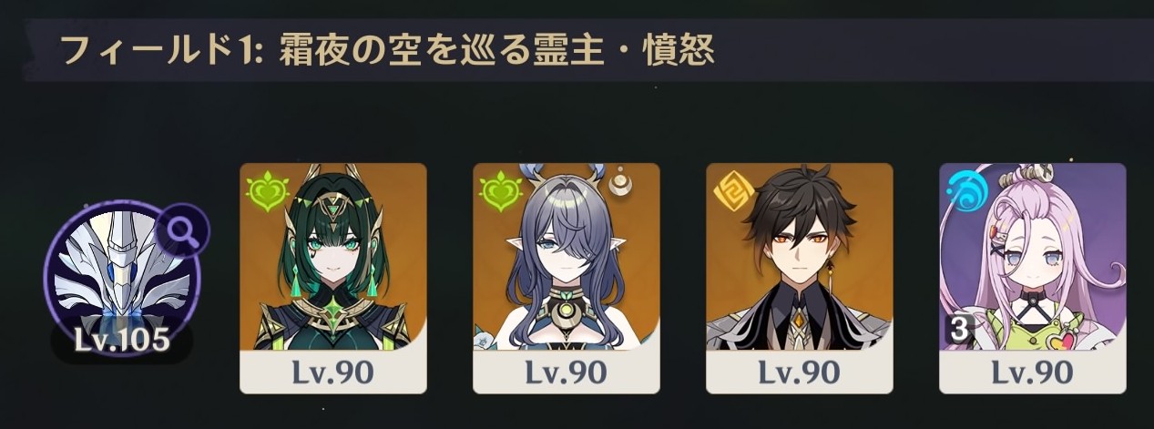 シールド必須のボスですが、どうやら火力は低いらしく、シトラリレベルのシールドで十分。鍾離は霊主に回しました。