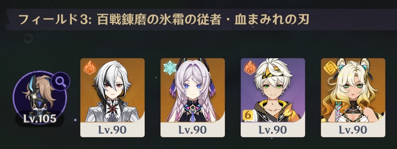 アルレッキーノ・鍾離・千織・夜蘭などで粘っていたものの、ギリギリ無理。クロリンデも厳しかった。