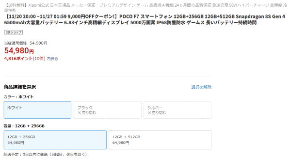 (シルバーとブラックが売り切れ状態。危なかった…)