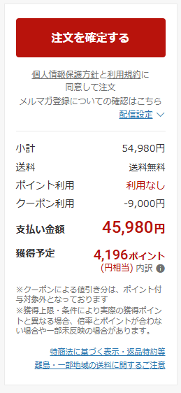 自分は楽天モバイルと契約しており、楽天カードと合わせるとデフォルトでポイント7倍かつ、お買物マラソンで3回購入(+3倍)で合計10倍に。(ブラックフライデーまで必需品の購入を控えていました)