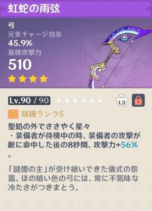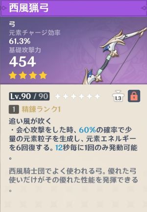 上記2本がない場合は、ナドクライ鍛造武器の「羅網の針」(元素チャージ効率+61.3%)で。