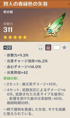 ただ、聖遺物のセット換装とか本当にめんどくさいし、ゲーム内のシステムとしてサポートされていないので、翠緑が無力なら他キャラに任せるぐらいでOKでしょう。(自分はそうしてます)