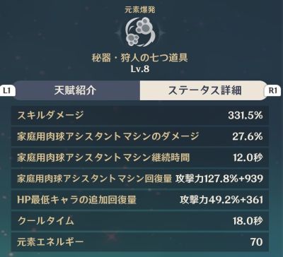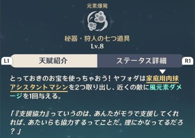 回復力に関わる元素爆発のレベルアップは嬉しい。