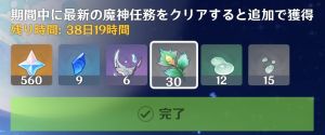 Luna4終了までに魔人任務をクリアすると、コロンビーナの育成素材セットが入手できます。