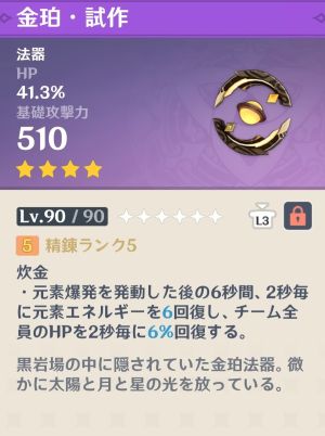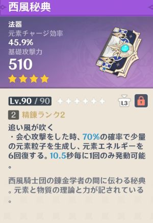 ただし、元素チャージ効率が「月紡ぎ」との比較で‐20%されるため、チャージ補助ありの武器以外だと装備は難しいと思います。