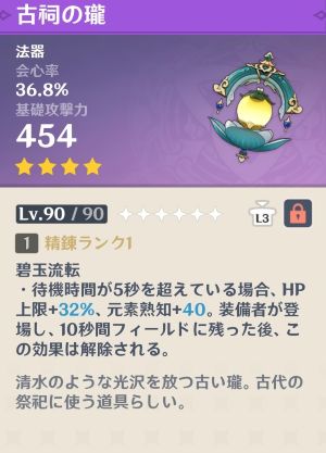 「HP%」「元素チャージ効率緩和」「低コスト」と3拍子揃った、コロンビーナにとってパーフェクトな武器。