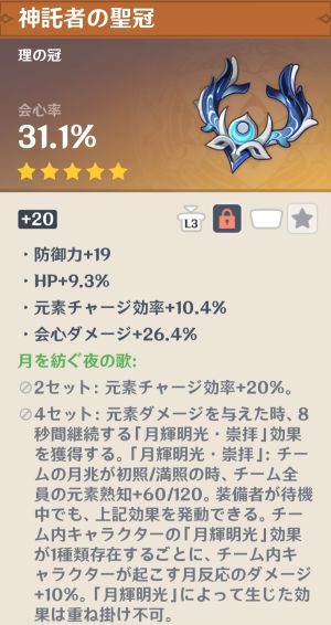ただ、間違いなく強いので、もし厳選が会心ダメージと元素チャージ効率に偏り気味なら、それはそれでラッキーかもしれません。