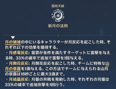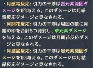 • 元素スキルの継続時間中にチーム内キャラクターが月反応を起こした時「引力値」を獲得