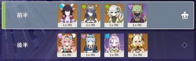 前半は冗談半分で超開花+コロンビーナアタッカー編成にしてみたら、余裕の1発通しでクリア。(後半はいつもの月感電パーティー)