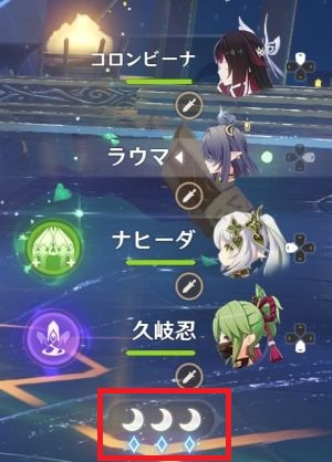 ナドクライキャラを所持していなくても、コロンビーナが1人いるだけで全ての月反応を起こせます。