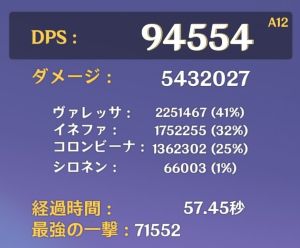 代用編成とはいえ、平均DPSは93,000~95,000をマーク。環境トップからは一枚落ちるものの、幽境の激戦エクストラ(高難易度コンテンツ)でも十分に通用する火力を出せます。