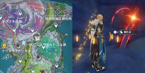 赤い光を回収しつつ、元素スキル長押しの大ジャンプで登っていくだけのみ。