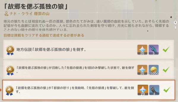 その”「先祖の狼魂」を一回のみ撃破“ですから、2回目の撃破はアウト。要はDPS勝負ということですね。