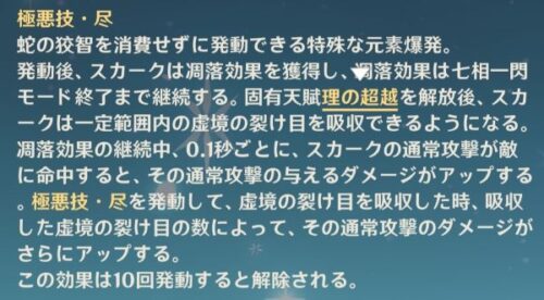 - 元素爆発がゲージを消費しない「極悪技・尽」に変化