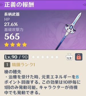 攻撃力と元素チャージ効率を両立できる貴重な武器です。