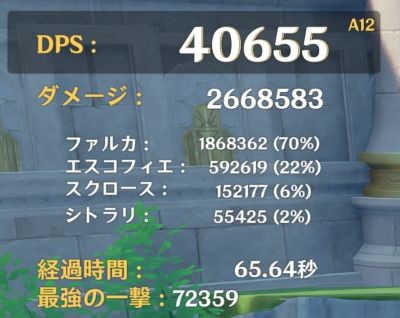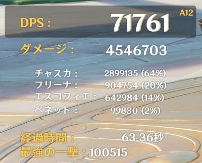 平均DPSは70,000前後。ギリギリナタレベルに届くかといったところでしょうか。