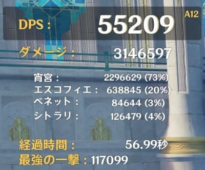 この数字だけを見ると少し微妙な感じもしますが、「エスコフィエを現環境上位のイネファに交代しても、パーティの平均DPSは変わらなかった」と表現する方が、エスコフィエの汎用性とサポート能力の高さがしっかり伝わるかもしれません。