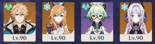 • 氷元素…甘雨・神里綾華・申鶴・リオセスリ