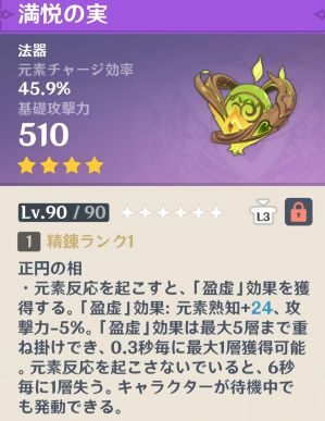 草元素ダメージバフなどを装備している場合ではありません。元素熟知一択です。