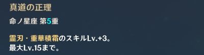 もちろん凸が進めば強力で、特に「CT短縮」というレア効果を持つ2凸や、メイン火力の元素爆発が大幅に強化される5凸・完凸(6凸)は非常に優秀です。