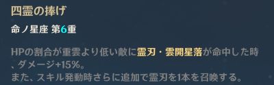 重雲の一番のダメージソースです。こちらにサポート効果はありませんが、「40族・クールタイム12秒」で撃てる火力としては純粋に強力です。
