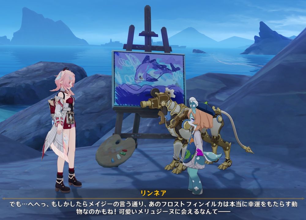 メリュジーヌと初めて対面したリンネアが、こんな可愛らしいリアクションを見せてくれます。瞳がハートマークなんですね…!